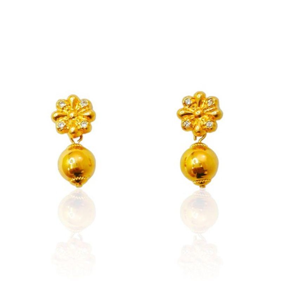 Um brinco que é um mimo! A base em forma de flor cravejada com 4 Zircônias e uma bola lisa pendente. Um Clássico que ultrapassa gerações.