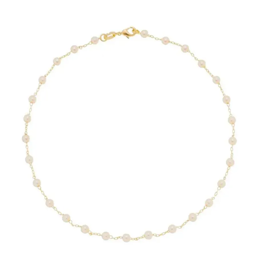 Corrente malha elos iguais 1,30mm com pérolas 4mm, comprimento 45cm.