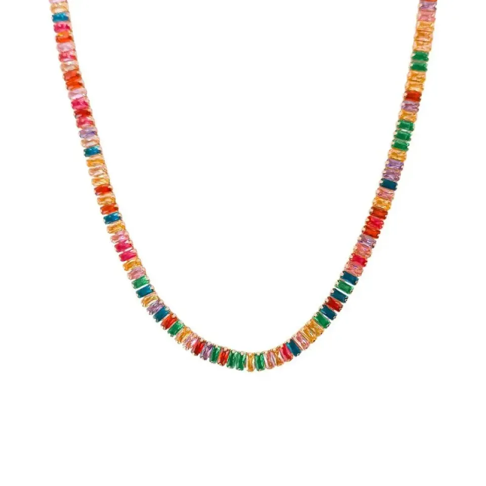 O Colar Riviera Colorida da marca Mari Celeste é uma peça icônica, perfeita para mulheres que buscam adicionar um toque de elegância ao seu estilo. Com um design deslumbrante em dourado e adornado com zircônias multicoloridas, este colar é ideal para ocasiões festivas e celebrações especiais.
