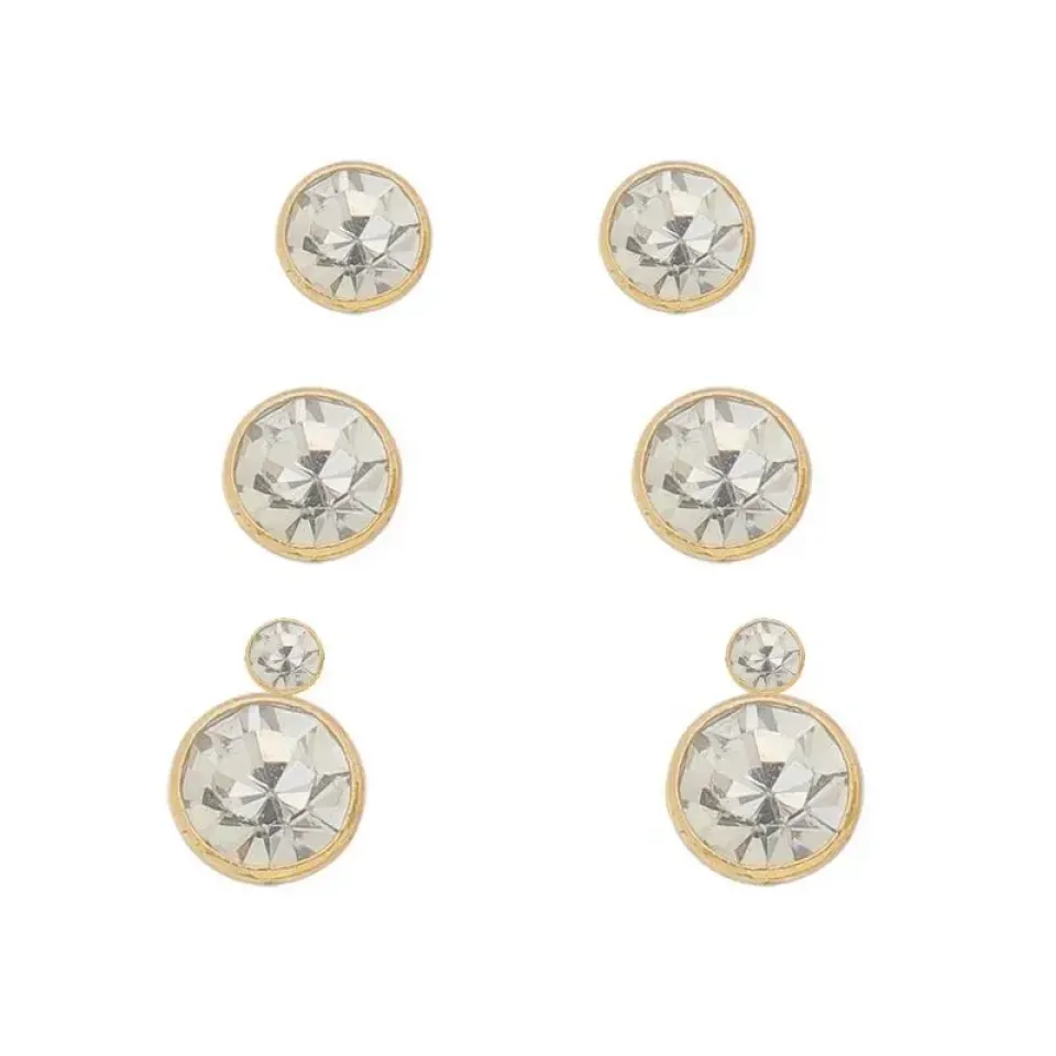 Brinco trio com pedras zircônia 5mm, 7mm 8mm.
